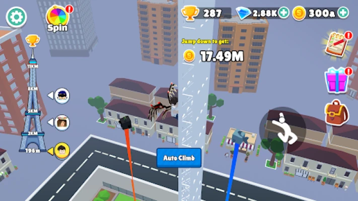 Climb and Jump Tower ile nihai kule mücadelesine hazır olun! Amacınız çok basit: mümkün olduğunca yükseğe tırmanın ve ardından zıplayın. Her seviyede zirveye ulaşmak için becerilerinizi kullanın ve heyecan verici bir tırmanış deneyimi yaşayın.